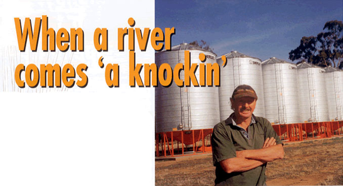 If you woke up one morning to find the River Murray coming down your hallway you could be forgiven for a bit of puzzlement. Especially if the Murray was about 20 kms away as the crow flies. But, in the 1970's, on the Holschier family's property, 'Paringa Vale', that is what would have happened if not for some hasty sandbagging at the front door. Seems some bureaucrat had forgotten to mention that Green Gully, where the homestead is situated was part of an ancient watercourse and when the Murray flooded it could send the surplus water into Steve Holschier's bedroom. Flood mitigation and 350 acres of saltbush plantings have helped suppress the problem but a high water mark on the shearing shed serves as a reminder that the river can enter without knocking.